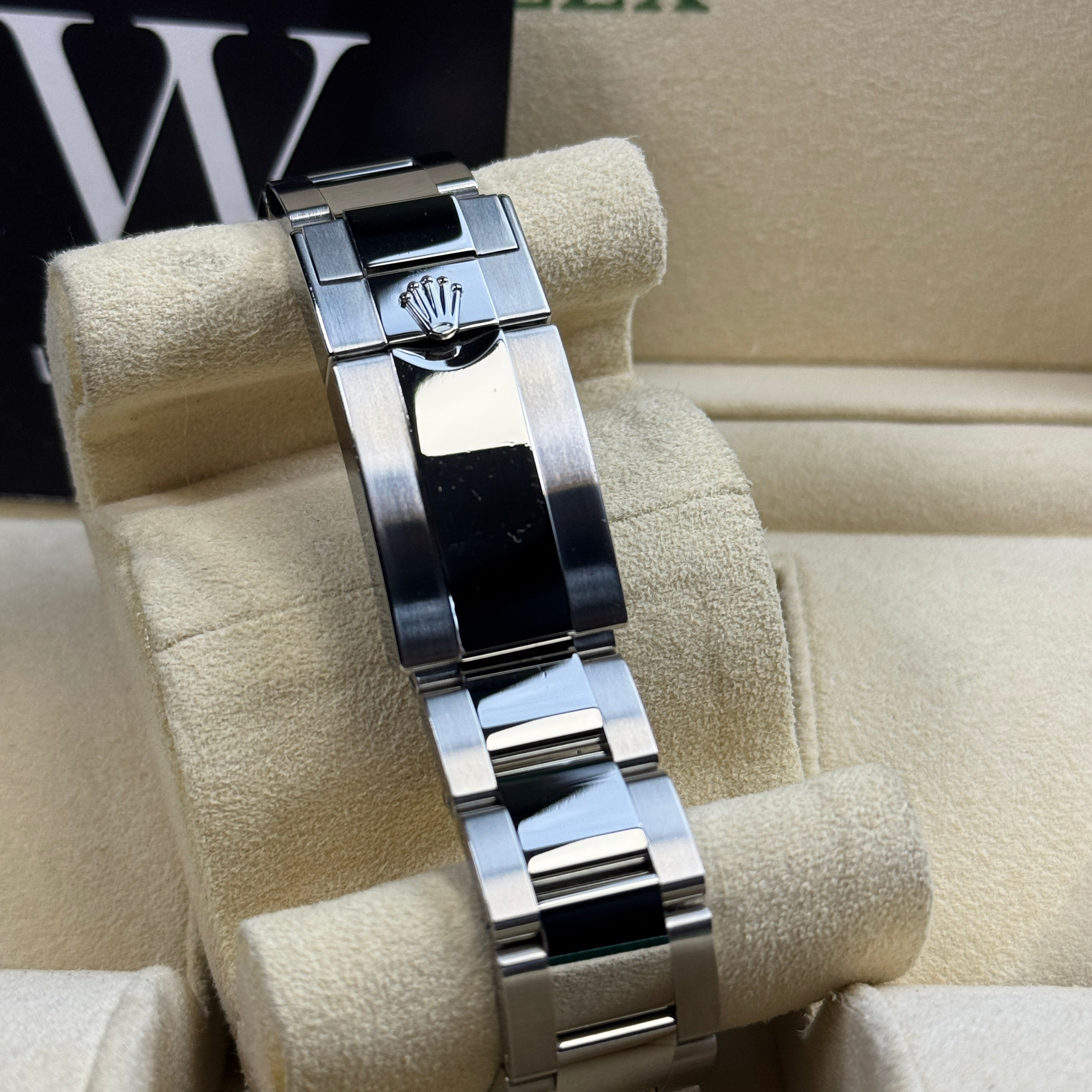 On the wrist, the Oyster bracelet balances sport and polish. The Oysterlock safety clasp secures the watch, and the Easylink 5mm extension lets you micro-adjust the bracelet in seconds. With 100m water resistance, a sapphire crystal with Cyclops, and the iconic blue/black bezel, the Rolex GMT-Master II 116710BLNR “Batman” is a standout choice if you want a modern steel GMT on Oyster that’s ready for travel and everyday wear. If you’ve been searching for a Rolex Batman for sale in the UK, this 116710BLNR is the one to own.