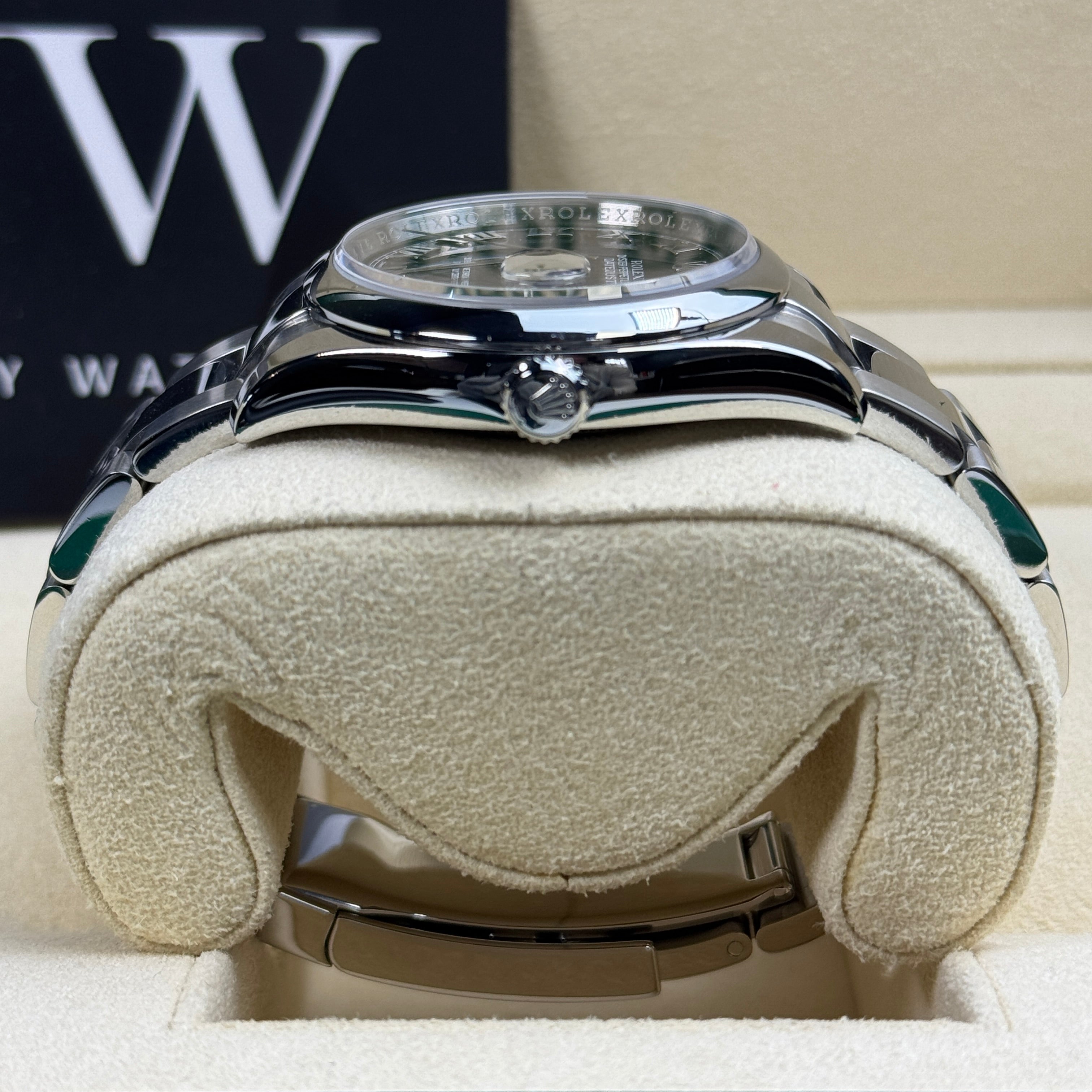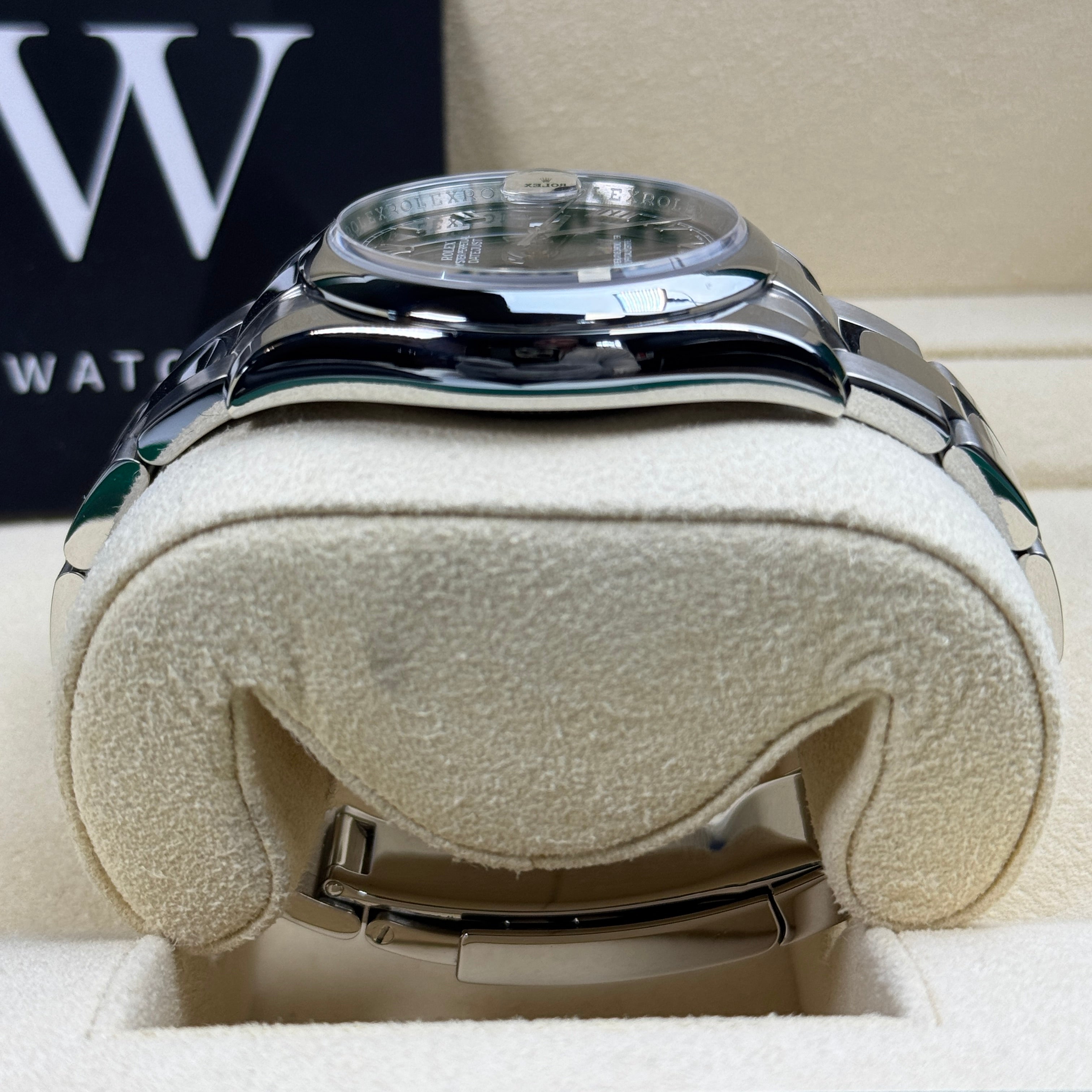 This 36mm steel Datejust is housed in a robust 36mm Oystersteel case, with a smooth bezel. The Oyster bracelet is a hallmark of reliability and comfort, features flat three-piece links seamlessly blending polished and brushed finishes. The secure Oysterclasp with Easylink extension offers comfort and adjust ability, allowing speedy resizing by up to 5mm ideal for changing conditions throughout your day.