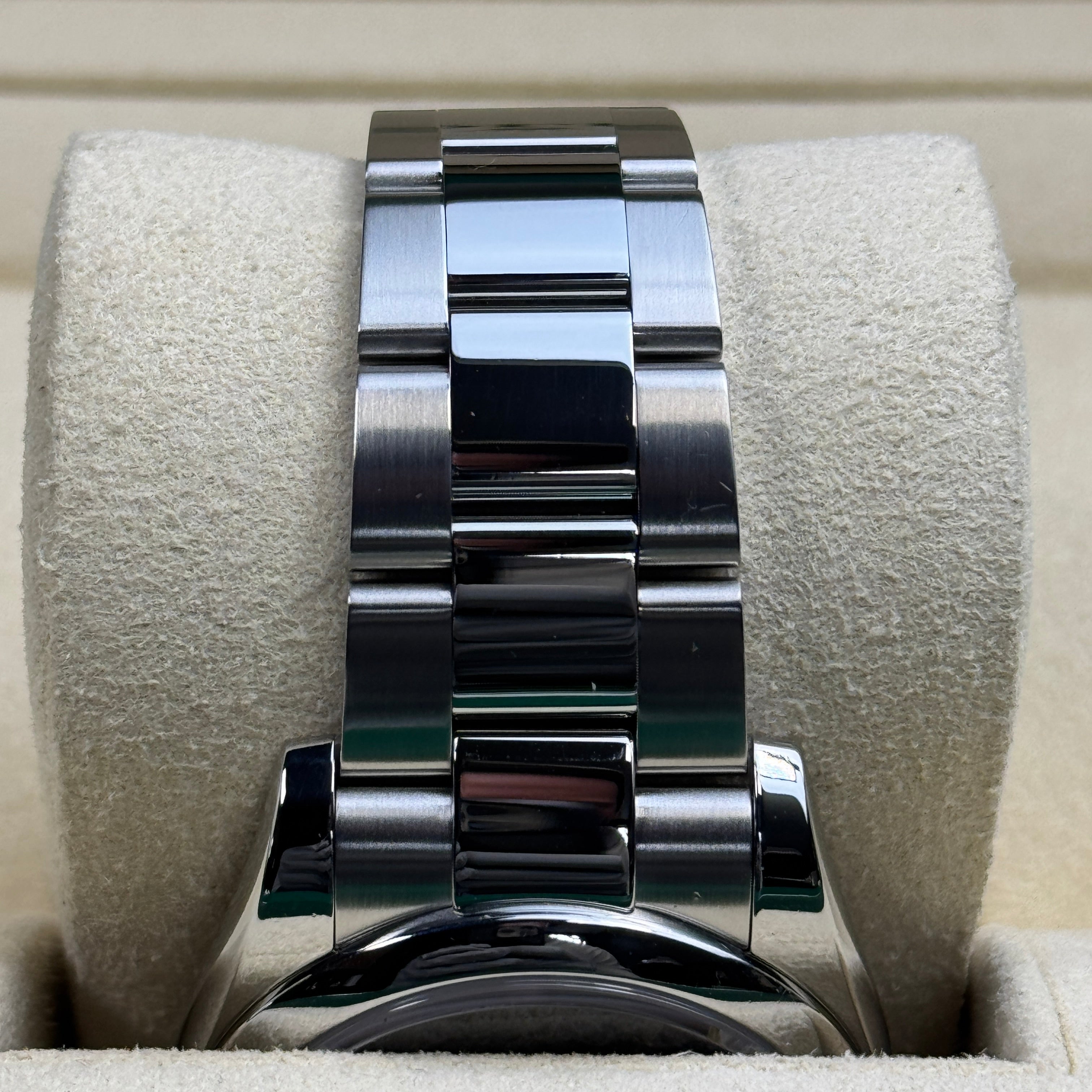 Powering this Rolex 116200 is the Rolex calibre 3135 movement, an automatic movement that has been the powerhouse in many of the Rolex models. This Superlative Chronometer-certified movement ensures exceptional precision within -2/+2 seconds per day, and an approximate 48 hour power reserve.